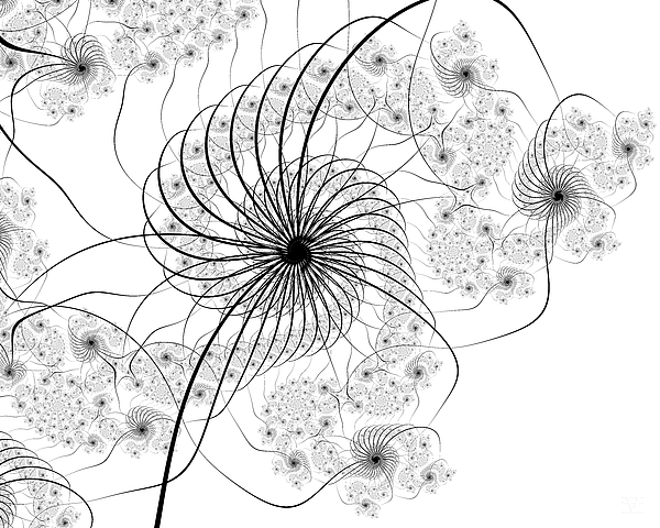 An image in stark black and white, no greyscale. It is a fractal image that suggests a child's delicate pinwheel or perhaps the wispy head of some... more
